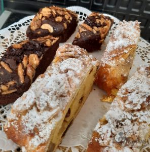 Bolas de Berlim, Pasteis de Nata, Mil Folhas, Palmiers, Queques, Bolos de Arroz, Pães de Leite, Croissants, Pães de Deus, entre outros,